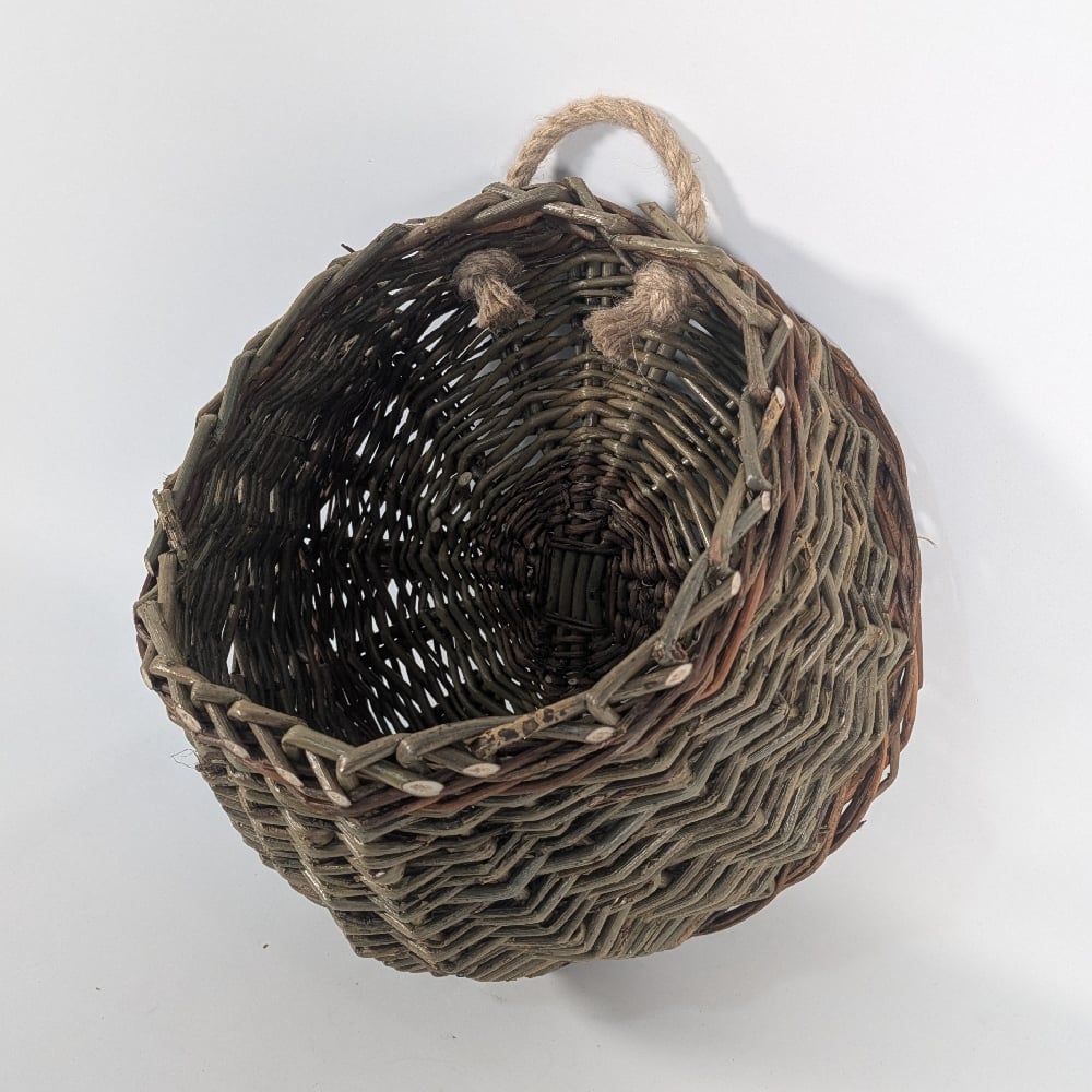 This wall mounted basket is woven from beautiful naturally coloured British willow, grown in Somerset and includes Dickie Meadows, Brittany Green and Flanders Red Willow.